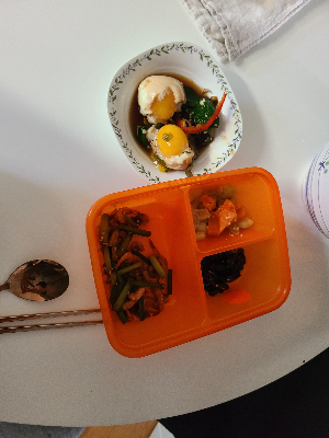 오늘 해 볼 요리는 반숙계란장과 건새우마늘쫑볶음, 콩자반입니다. 직접 반숙계란장을 만들어서 밥에 비벼서 먹으면 정말 맛있습니다. 특히나 그 특유의 고소함과 짭짤함은 간장계란밥과 거의 비슷한 맛입니다. 그리고 건새우마늘쫑볶음을 저는 처음에 잘 먹지 않았습니다. 왜냐면 만드는 사람마다 차이가 있기 때문에 특유의 비린 맛 때문에 먹을 수가 없었습니다. 그래도 남편이 너무 잘 먹어서 다행이었는데 어느 날 잘 먹는 남편을 보니 맛이 궁금해서 먹어보니 나름 괜찮았습니다. 그리고 저 콩자반은 차승원 님이 유해진 님에게 만들어준 것을 보고 만들어 봤습니다. 저도 처음 만들었는데 콩을 조금 모자라게 불렸는지 약간 단단해서 고생이었지만 나쁘지 않았습니다. 오이무침은 가끔 만들어 보고는 합니다. 요새는 아이들도 같이 먹다 보니 된장으로 무쳐 먹다 보니 나름 괜찮았습니다. 그러면 반숙계란장과 한 끼 식사에 필요한 반찬을 같이 만들겠습니다. 요리하는 방법입니다. 재료는 파프리카, 깻잎, 양파를 준비합니다. 파프리카는 씻어서 씨앗을 손질하고 채썰어서 준비합니다. 깻잎은 한장한장 씻어서 마찬가지로 채 썰어서 준비합니다. 양파는 껍질을 제거하여 비슷하게 채 썰어줍니다.반숙 계란장의 재료로 계란, 진간장, 양조간장, 홍게간장, 맛간장, 매실청을 준비합니다. 큰 냄비에 계란이 다 잠길 만큼 물을 준비하고 소금 3큰술 식초 3큰술 넣고 끓여줍니다. 물이 끓는 동안 다른 냄비에 물 300미리를 넣고 진간장 10큰술, 홍게간장 10큰술, 맛간장 8큰술, 양조간장 5큰술, 매실청 3큰술 넣고 끓여서 한 김 식혀줍니다. 계란 삶을 물이 끓으면 계란을 넣고 반숙이 되게끔 끓여 줍니다. 계란이 다 되었다면 찬물에 넣어줍니다. 반찬통에 삶은 계란과 미리 준비한 당근, 파프리카, 깻잎, 양파를 넣어 줍니다. 재료를 넣은 반찬통에 한 김 식힌 간장을 넣고 냉장고에 넣어서 3일간 숙성 후 먹으면 완성입니다. 건새우마늘쫑볶음의 재료입니다. 건새우, 마늘쫑, 물엿, 참기름, 설탕을 준비하고 건새우는 마른 팬에 볶아 줍니다. 마늘쫑은 먹기 좋은 크기로 썰어 깨끗이 씻은 후 물기를 제거합니다. 팬에 식용유를 두르고 건새우와 마늘쫑을 볶습니다. 위에 계란장 간장 2스푼 설탕 1 스푼 넣고 볶습니다. 물엿 1스푼, 참기름, 깨 약간 넣고 마무리합니다. 콩자반은 검은콩, 올리고당, 카놀라유, 설탕, 통깨, 진간장, 콩 불린 물을 준비하고 콩을 3-5번 세척 한 뒤 콩이 잠기게끔 물을 넣고 1시간 불려줍니다. 불린 콩을 냄비에 넣고 불린 물을 200미리 넣어줍니다. 진간장 3스푼 카놀라유 1스푼 넣어줍니다. 설탕 1큰술 넣어줍니다. 보글보글 끓이다가 물이 졸으면 약불로 줄입니다. 어느 정도 졸았다면 올리고당 1큰술 넣어서 단맛을 조절하여 완성합니다.